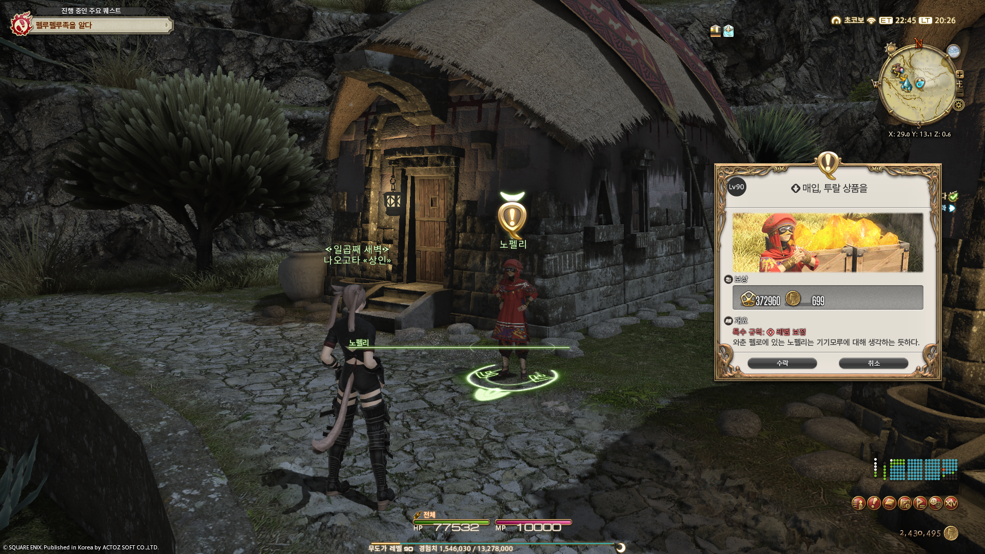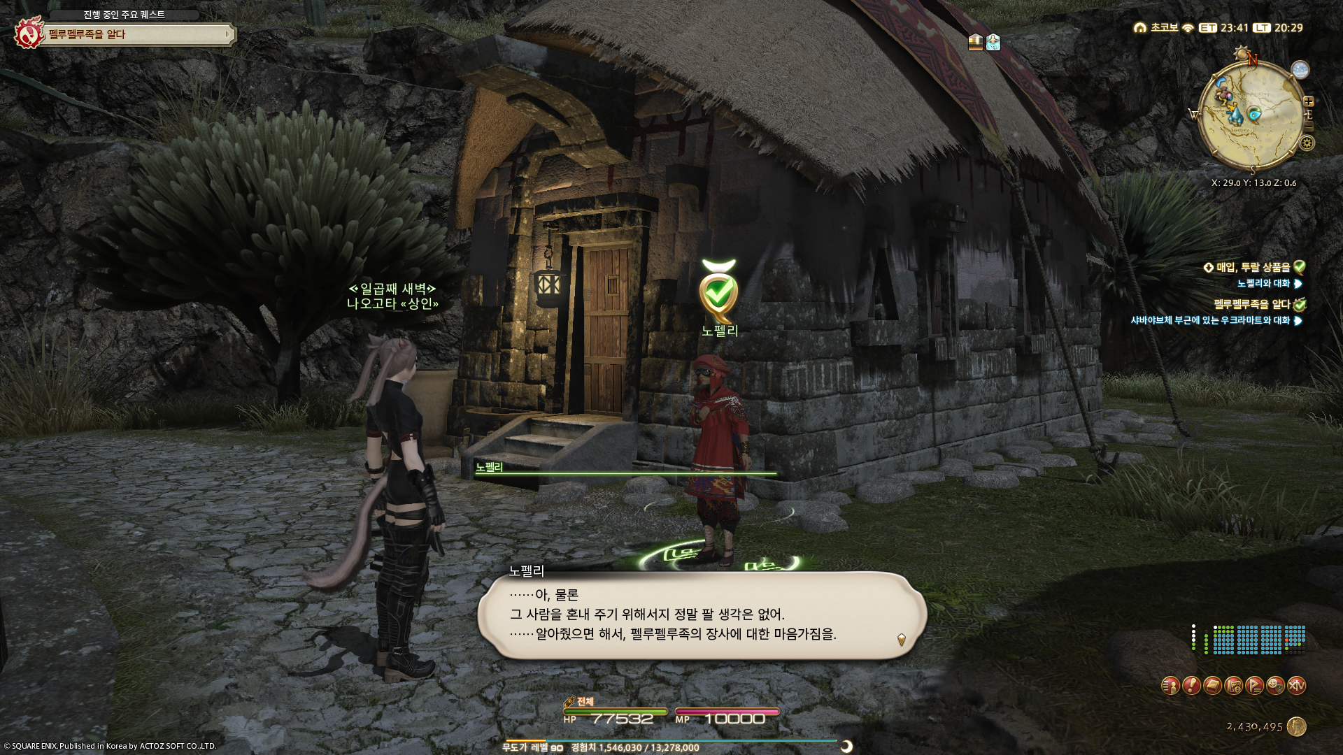 와춘 펠로의 연계퀘스트.